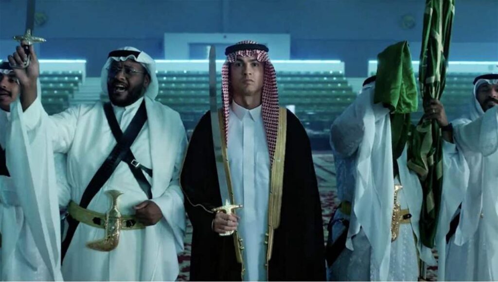 رونالدو يرتدي الزي السعودي التقليدي ويؤدي العرضة السعودية احتفالاً باليوم الوطني