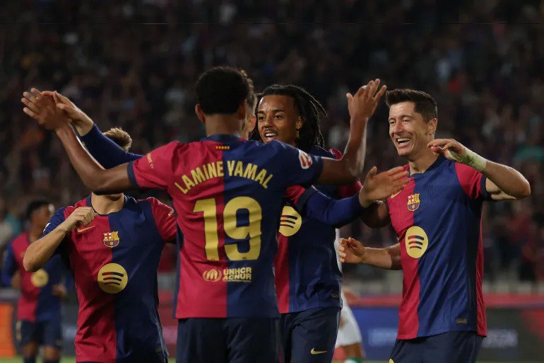 وعلى ملعب لويس كومبانيس الأولمبي افتتح أصحاب الأرض باب التسجيل في الدقيقة 25 عن طريق جيرارد مارتن بعد صناعة جميلة من لامين يامال الذي تلاعب بدفاع سوسيداد قبل أن يقدم له عرضية متقنة. بعدها بثلاث دقائق عزز البارسا تقدمه بهدف ثان حمل توقيع مارك كاسادو الذي تابع تسديدة قوية من داني أولمو باغتت الحارس ريميرو. وفي الدقيقة 56 أضاف رونالد أراوخو الهدف الثالث لبرشلونة برأسية بعد أن تابع كرة صدها الحارس. وزادت شهية برشلونة للتسجيل حيث نجح روبرت ليفاندوفسكي في تسجيل الهدف الرابع لبرشلونة في الدقيقة 60 بعد أن تابع تسديدة لأراوخو رافعاً رصيده إلى 21 هدفاً.