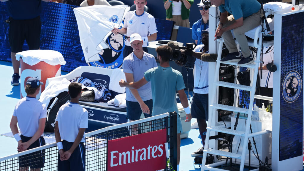 لحظة انسحاب يانيك سينر من نهائي سينسيناتي بسبب الإعياء. مصدر الصورة: Pinterest
