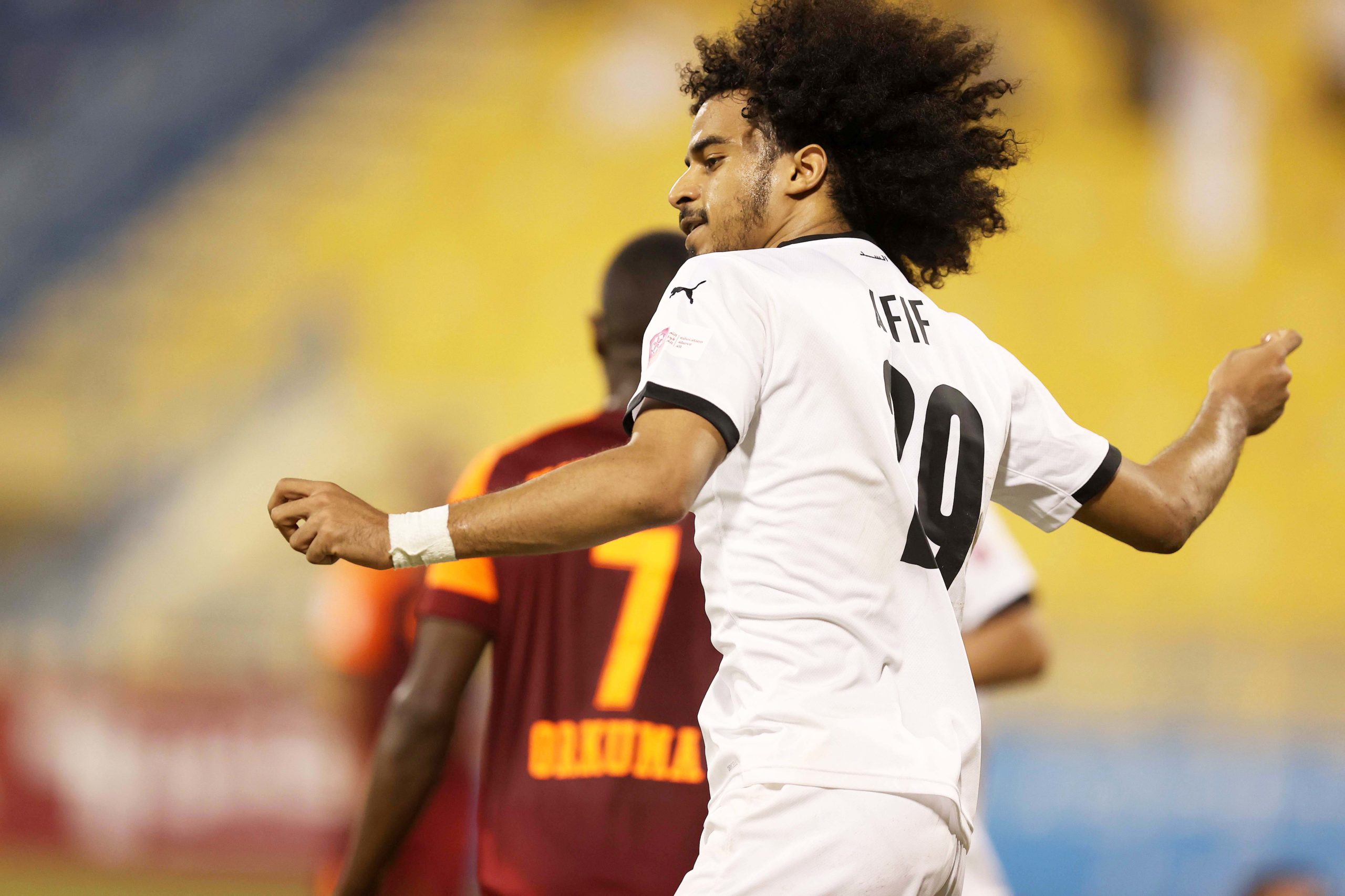 أكرم عفيف يحاول اختراق الدفاع العُماني وسط صراع تكتيكي محتدم على ملعب جاسم بن حمد. مصدر الصورة: Pinterest