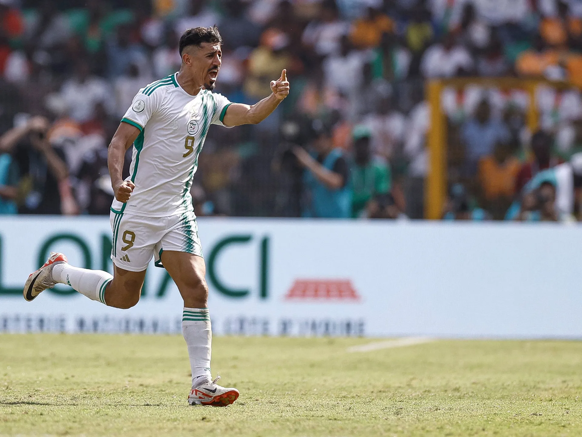 بغداد بونجاح يحتفل بأحد أهدافه الحاسمة مع منتخب الجزائر ضد بوتسوانا. مصدر الصورة: Pinterest