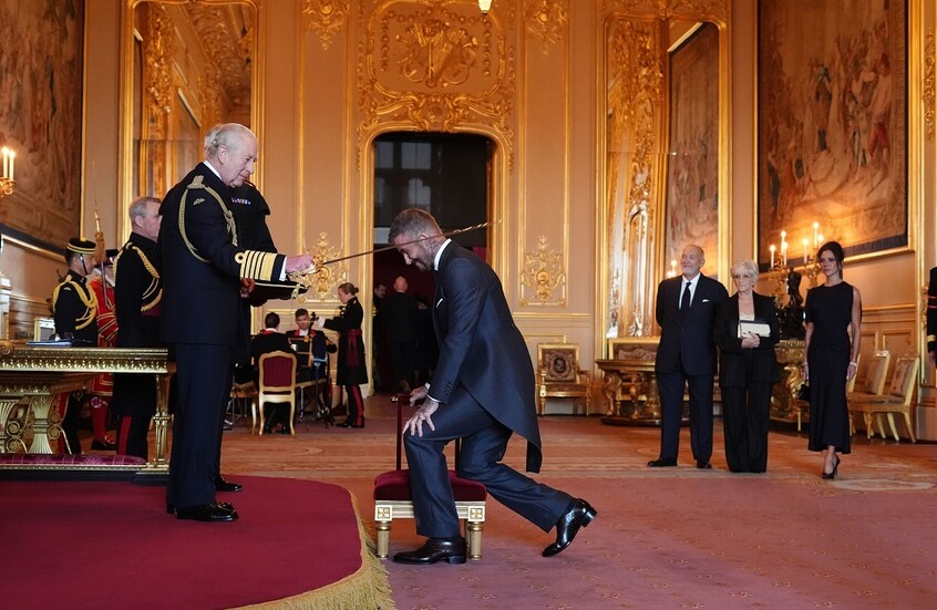 لحظة الفخر الأكبر: ديفيد بيكهام يتسلم لقب فارس من الملك تشارلز الثالث داخل قصر وندسور العريق. مصدر الصورة: Pinterest