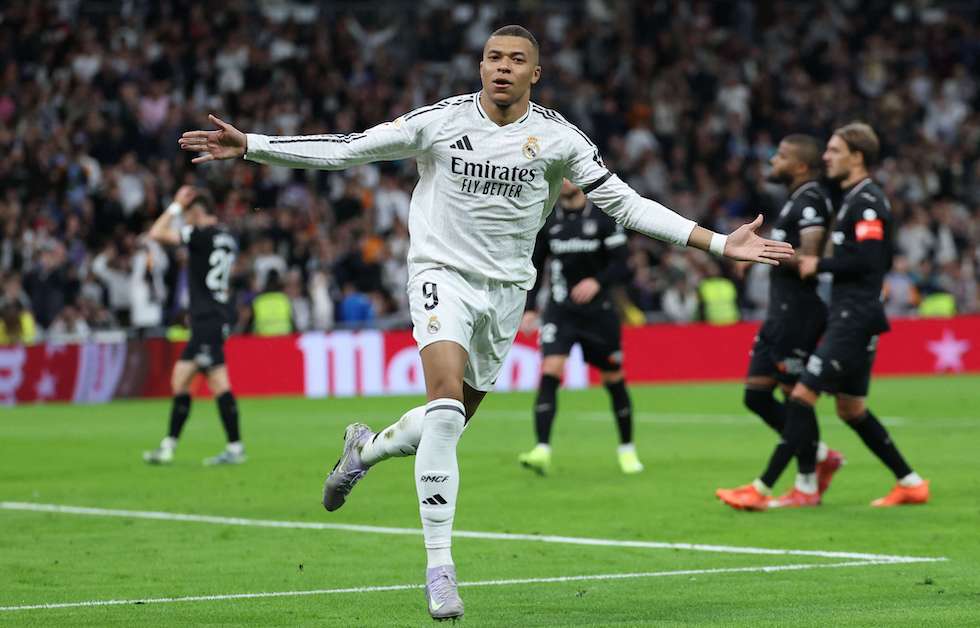 كيليان مبابي يحتفل بهدف الفوز مع ريال مدريد أمام أوساسونا في افتتاح الدوري الإسباني. مصدر الصورة: Pinterest