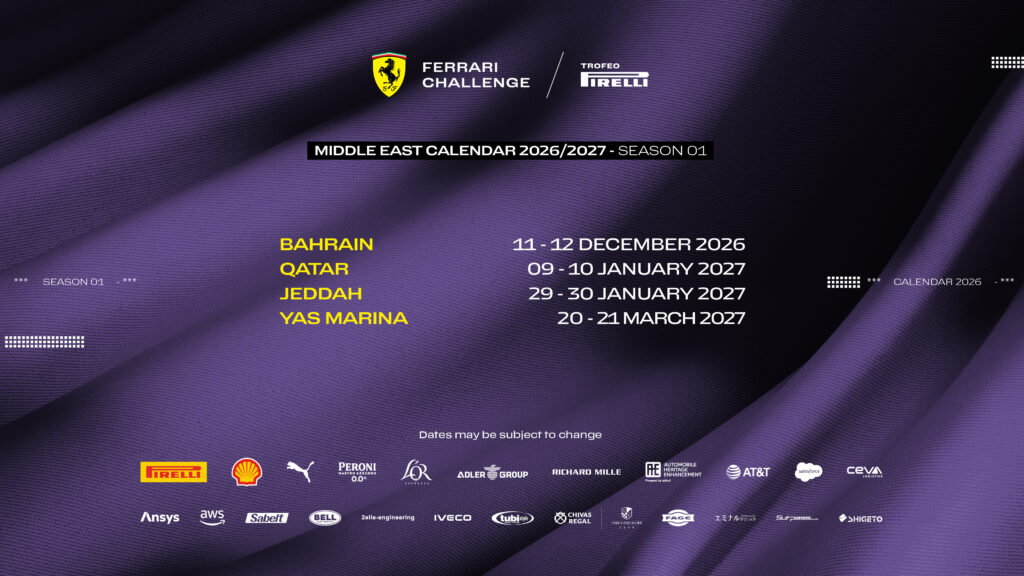 وأضاف أندريا ملادوسيتش، رئيس بطولة فيراري تشالنج وكورسو بيلوتا: “يمثل إطلاق بطولة فيراري تشالنج الشرق الأوسط في نهاية العام مصدر فخر كبير لنا، ويشكّل خطوة مهمة أخرى في عملية التوسع الإقليمي للبطولة التي بدأت في 2019 مع تقديم سلسلة تشالنج المملكة المتحدة. ومع هذه السلسلة الجديدة في الشرق الأوسط، فإن بطولة فيراري تشالنج تضم الآن أربع بطولات إقليمية، تشمل المملكة المتحدة، واليابان، وأستراليا، والشرق الأوسط، إلى جانب السلسلتين في أوروبا وأمريكا الشمالية. لقد أعرب عملاؤنا من السائقين عن رغبتهم في المنافسة على الحلبات الرائعة التي توفرها هذه المنطقة. كما أن التقويم الذي صممناه مثير للغاية وسوف يسبقه حدث تمهيدي خاص خلال أيام سباقات فيراري، من المقرر إقامته في قطر خلال شهر فبراير”.