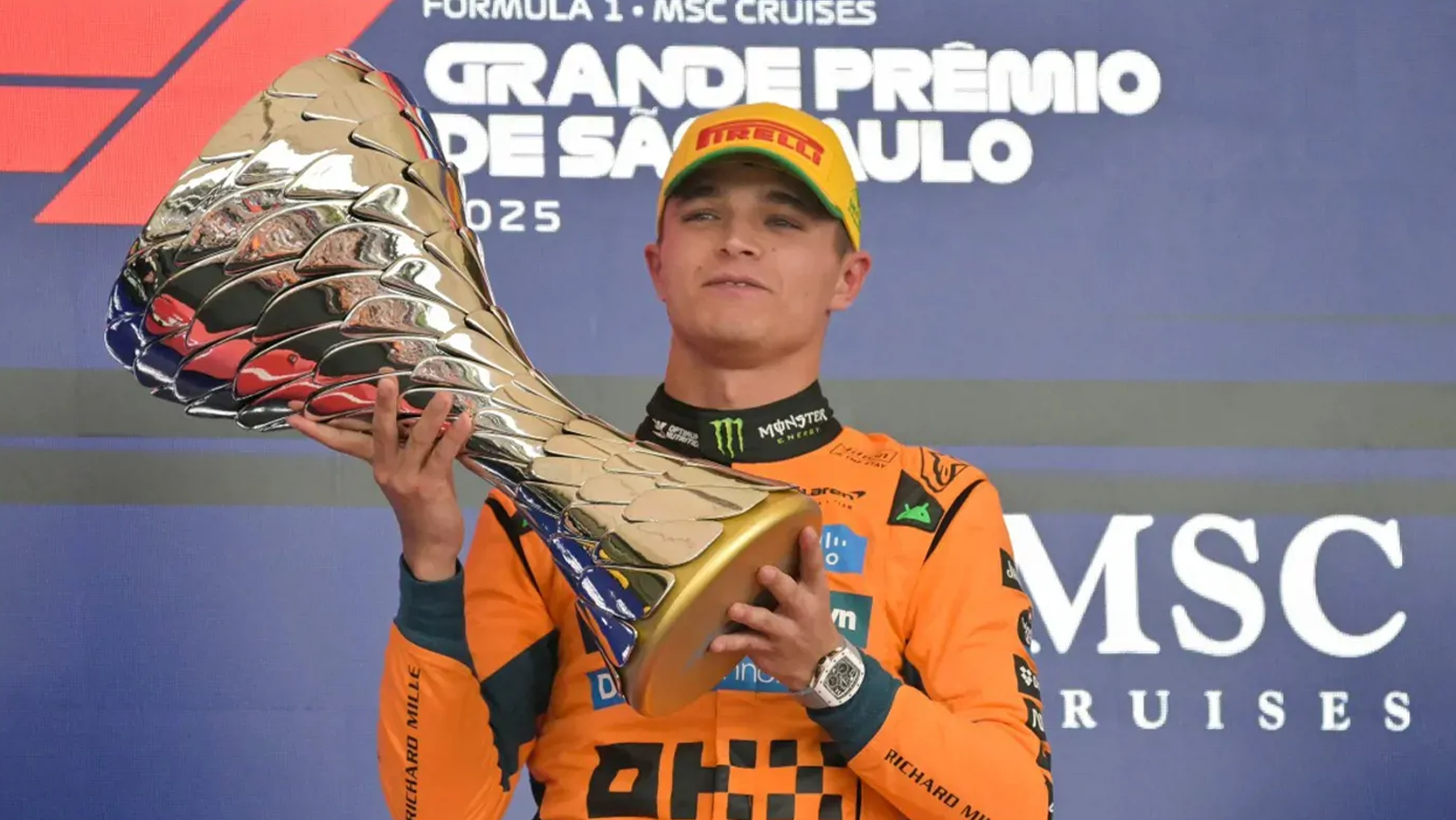 أثبت لاندو نوريس في جائزة ساو باولو الكبرى أنه سائق من طراز فريد، مقدماً أداءً متكاملاً لم يترك مجالاً للشك في أحقيته بالانتصار. فبعد أن حقق المركز الأول في التجارب التأهيلية للسباق القصير (سبرينت) وفاز به، كرر الإنجاز ذاته في التجارب التأهيلية للسباق الرئيسي، ليؤكد سيطرته المطلقة على الحلبة البرازيلية. فوزه الثاني توالياً والسابع هذا الموسم والحادي عشر في مسيرته، لم يعزز فقط ثقته بنفسه، بل وسع الفارق بينه وبين زميله الأسترالي أوسكار بياستري إلى 24 نقطة، قبل ثلاث جولات فقط من ختام الموسم. هذا الفارق الكبير يضع نوريس في موقع قوة غير مسبوق، ويجعله المرشح الأوفر حظاً لرفع كأس البطولة. وعقب السباق، عبر نوريس عن سعادته الغامرة قائلاً: “كان سباقاً رائعاً. أنا سعيد جداً بالفوز على هذه الحلبة المذهلة. قام الفريق بعمل رائع وعملت بجهد كبير على الحلبة وخارجها من أجل تحقيق ذلك، بالتالي إنها مكافأة جميلة”.