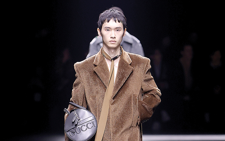 خلال أسبوع ميلانو للموضة للأزياء الرجاليّة لموسمي خريف وشتاء 2024 – 2025، أسدلت دار غوتشي العريقة الستار عن تشكيلتها الرجاليّة للموسم المرتقب. وسردت العلامة الإيطاليّة المرموقة فـي عرضها الذي أقامته فـي ميلانو، قصّة تدمج ما بين الشغف، الواقع، الثقة، المشاعر الفنّ، الأماكن والكلمات. تلبّي مجموعة غوتشي تطلّعات الرجال من مختلف الفئات العمريّة، إذ إتّسمت بطابع العفويّة، الغنى والتحرّر مع لمسة من الأناقة والحداثة غير المتكلّفة.بالإنتقال إلى تصاميم المجموعة الخريفـيّة – الشتويّة، فقد ارتكزت على الأسلوب الكلاسيكيّ الذي برز فـي السراويل بقصّاتٍ شيك، مع السترات الرسميّة والبدلات الكلاسيكيّة والمعاطف الطويلة والمتوسّطة الطول.من ناحية لوحة الألوان، فقد طغت عليها الدرجات الكلاسيكيّة والحياديّة اللّون، مثل الأسود، الأبيض، البيج، البنّيّ والزيتيّ، مع لمسات من الأزرق الفاتح والأحمر العنّابي الداكن، فـي الوقت الذي تنوّعت فـيه الخامات ما بين الصوف، الجلد والكريب على مستوى البدلات الرسميّة.أمّا من أبرز الصيحات التي برزت فـي المجموعة، فكانت الخطوط المستطيلة، الحبيبات والتفاصيل المتلألئة ونقشات غوتشي المونوكروم على الملابس والأكسسوارات، التي ارتكزت بدورها على الحقائب الجلديّة الفاخرة والكبيرة، فضلاً عن ربطات العنق الرفـيعة والطويلة، النظارات الشمسيّة الملوّنة.