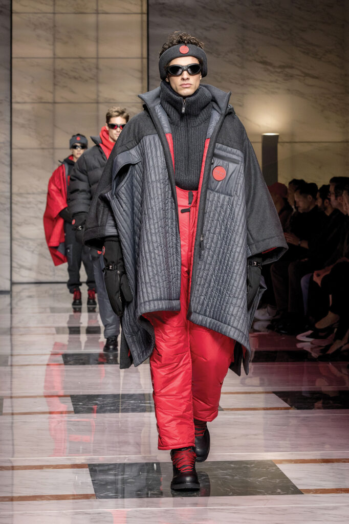 Gucci طابع كلاسيكي مع لمسة جريئة بعيداً عن أسلوب مصمّمها السابق، أحتفلت الدار بـ«جماليات الارتجال»، من خلال مجموعة طغى عليها الطابع الكلاسيكي لكن مع لمسة جريئة.تضم المجموعة معاطف طويلة مزركشة تُلبس فوق السراويل الفضفاضة. ومن الأكسسوارات الأساسية، كانت لافتة القبعات الصوفـية إضافة إلى حقائب تسوق مستطيلة أو حقائب ملابس توضع على الكتف.هذا وتميّزت التصاميم بالمواد المرنة التي مزجت بين الأنواع والألوان، مع الجمع بين الجينز الباهت والقمصان المزيّنة بالترتر والأحذية ذات الكعب الأخضر أو الأحمر أو الوردي المستوحاة من موضة السبعينيات. Prada تصاميم مريحة وألوان قوية وهادئة فـي مجموعة Prada لخريف وشتاء 2023-2024 ، قدّم راف سيمونز وميوتشيا برادا، اللذان يعملان جنبًا إلى جنب لتصميم مجموعات الرجال فـي الدار الإيطالية، سلسلة من التصاميم تضمّنت نسخة رجالية من الفستان الشهير ذات الأكمام الطويلة المصنوعة من الجلد المدبوغ المعروف أيضًا باسم Suede Leather الذي يأتي باللون الرملي والأزرق الداكن والبني والأسود، ويتم ارتداؤه فوق بنطلون بذلة مع معطف من نفس اللون والقماش، إضافة إلى تصاميم مريحة، مثل البدلات الرسمية المنسّقة مع قمصان بياقة كبيرة والسراويل الكلاسيكية التي تمّ تنسيقها مع سترات بومبر وهودي والمعاطف الطويلة والسترات.وأتت بعض القطع بألوان قوية كالأخضر، الأحمر إلى جانب الألوان الهادئة مثل البنّي والرمادي والكحلي والأسود. Tod’s أناقة عصرية وألوان دافئة لخريف وشتاء 2023، تواصل تودز رحلتها وتعيد اكتشاف جوهر الأسلوب الإيطالي وتختار الأناقة العصرية بعيداً عن الحنين إلى الماضي. تُعتبر الزخارف والتفاصيل عملية لخزانة ملابس مليئة بالأزياء الحضرية الأساسية، وقد تمّ العمل على تكييف الخياطة فـي تشكيل الصورة الظلية للخياطة المميزة والمصنوعة من مواد عالية الجودة. كل ذلك فـي لوحة ألوان تتمحور حول تدرجات الألوان الدافئة، من البني إلى الكراميل إلى البيج، التي تتناقض فـي تقاطع مع الألوان الرمادية والبيضاء.تمّ تحسين وتزيين تصاميم كلاسيكيات الملابس الرياضية الرجالية بإضفاء لمسة حضرية قوية عليها دون إهمال عناصر الكاجوال المريحة فـي الحياة اليومية.وتلعب Tod’s Pash Jacket دور البطولة الحقيقية فـي هذه المجموعة والمصنوعة من أجود أنواع الجلود. تمّ إبتكار Pash Jacket ببراعة فـي مختبرات تودز Tod’s والتي جاءت وليدة اهتمام خاص بتفاصيل الأقمشة المعالجة والتي تُصنّع يدويًا بحرفـيّة على الدوام. تؤكد ضربات الفرشاة على المادة، وتضفـي التلميعات إحساسًا ثلاثي الأبعاد، بفضل التقنيات الماهرة من الشمع، حيث يكتسب الجلد ظلالاً جديدة تبرز الجودة الرائعة.وكسى النابا الناعم الذي يكاد يكون لامعاً Shirt Jacket؛ جلد الغزال المنسوج يدويًا خُصص لسترات المدينة City Jackets؛ اما القطن فـيضاعف سماكة سطح الجلد المدبوغ ليتمّ استخدامه فـي سترات المغامرة Adventure Jackets؛ والجلد المصقول صُممت منه السترات القصيرة وسترات البومبر Bomber Jackets. وكلها عناصر أساسية لمجموعة تجعل من جودة المواد والحرفـيّة محور تركيزها الرئيسي.وتتشكّل الأحذية الرجالية التقليدية من الأربطة وأحذية الكاحل، مما يضفـي مظهرًا مهمًا على الجلد البني والأسود، فهي ناعمة وخفـيفة، ونعلها مخيط يدويًا. الجزء السفلي المطاطي هو بطل الرواية الرئيسي بأشكاله المستديرة لأحذية الموكسان والأحذية الرسمية. Giorgio Armani أناقة عالية للملابس الرسمية وحلة مميّزة للأسلوب العملي تم إستيحاء مجموعة جورجيو أرماني لخريف وشتاء 2023-٢٠٢٤ مستوحاة من ردهات قصور ميلانو التي تخفـي حدائق ومساحات مصمّمة بهندسة رصينة باللون الأبيض والرخام، التي تنعكس فـي المواد المُستخدمة فـي المجموعة مثل الكشمير وقماش من صوف الألبكة والمخمل والجوخ.وطبعًا طغت الملابس الرسمية على هذه المجموعة، مثل السراويل الكلاسيكية التي تمّ تنسيقها مع سترات من دون أكمام بلون متطابق لها، جنبًا إلى جنب مع تلك المُنسّقة مع سترات مطبّعة.ويأتي