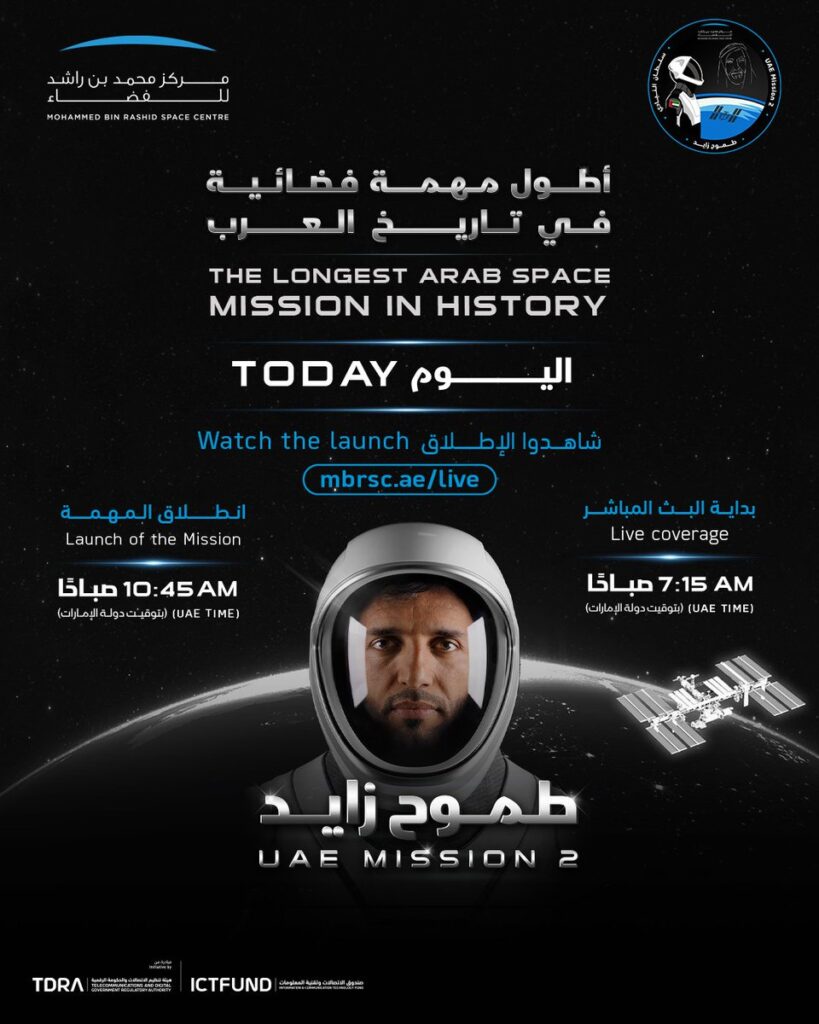 البث المباشر لإطلاق أطول مهمة عربية إلى الفضاء