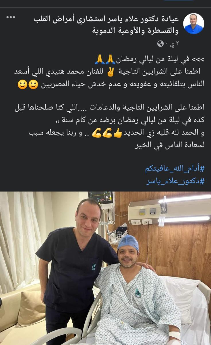 كما قال ياسر عبر منشوره: “في ليلة من ليالي رمضان، اطمنا على الشرايين التاجية للفنان محمد هنيدي، اللي أسعد الناس بتلقائيته وعفويته وعدم خدش حياء المصريين”.